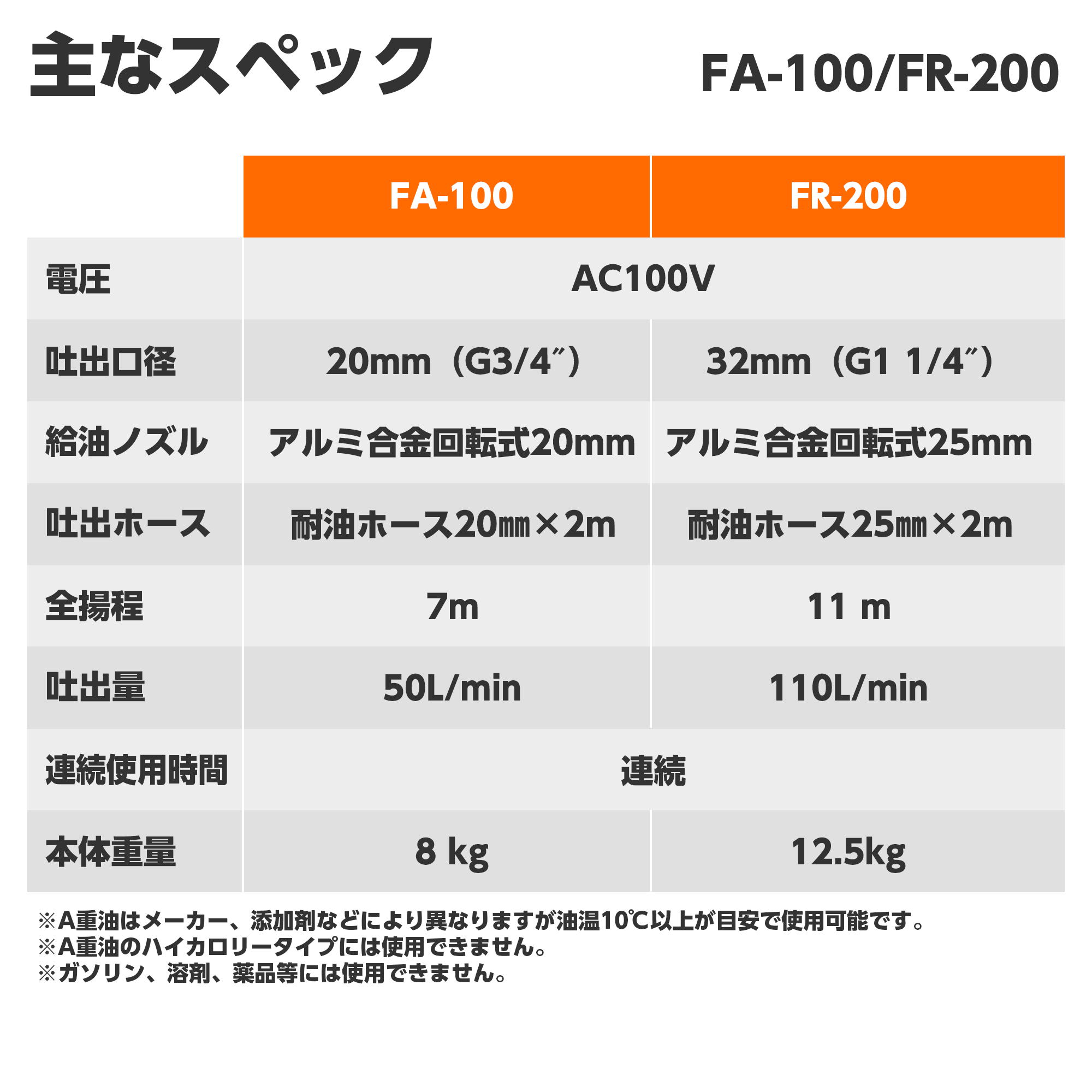 | 使用液_液質 | 低粘度油 (100 mm2/s 以下): 灯油、軽油、A重油(ハイカロリータイプ除く)など ※1 |