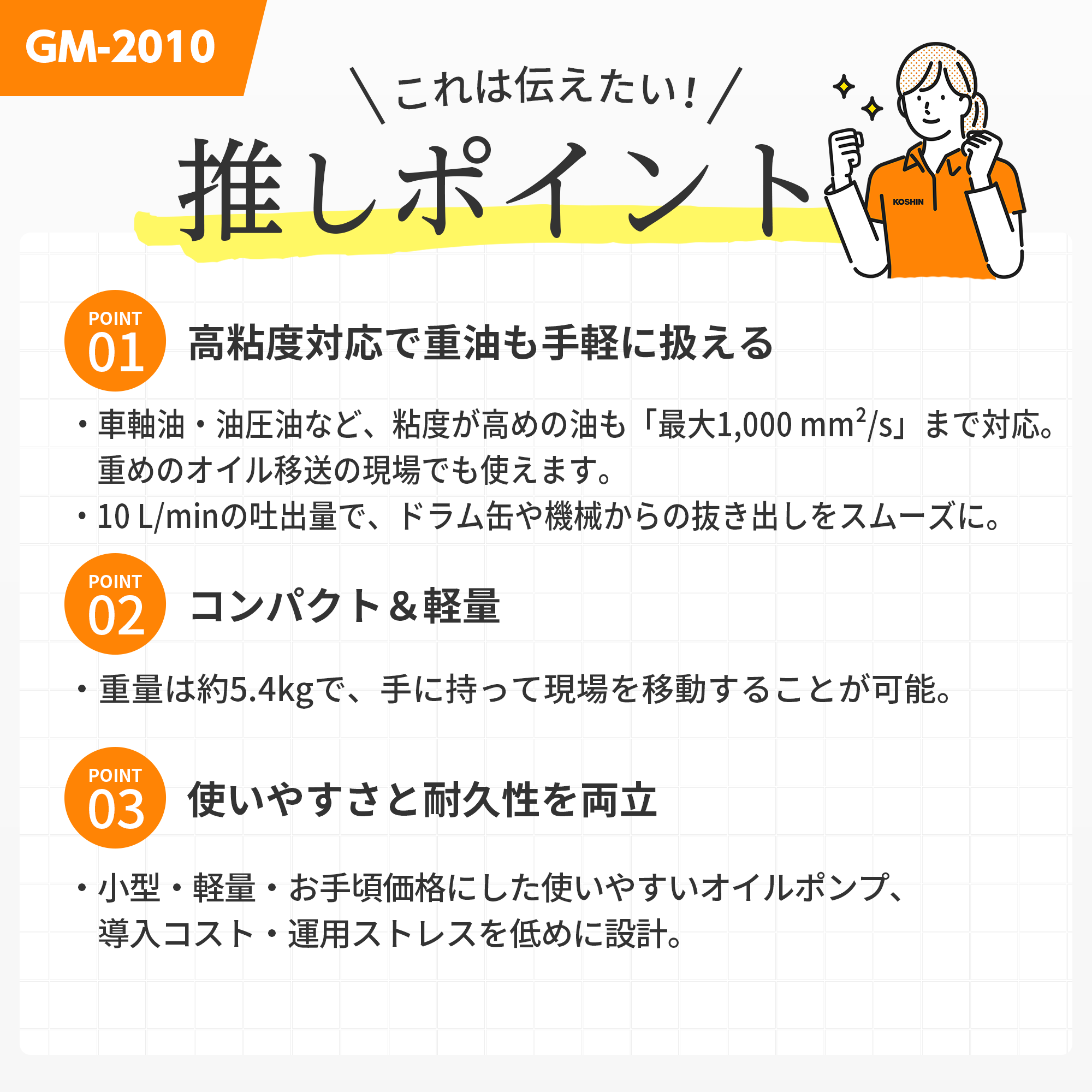 ●車軸油や油圧油などの高粘度油の移送に最適のポンプです。 (AC-100Vタイプ)