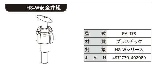 | 型式 | HS-W 安全弁クミパーツ(PA-178) |
