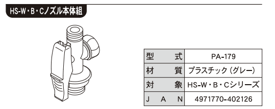 | 型式 | HS-W ノズル本体クミパーツ(PA-179) |
