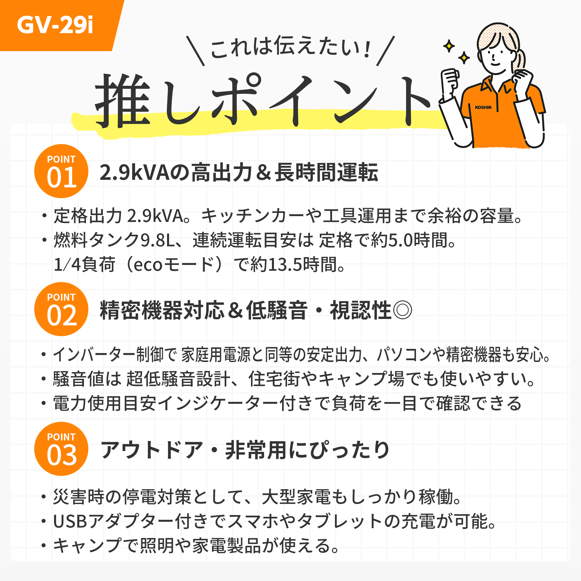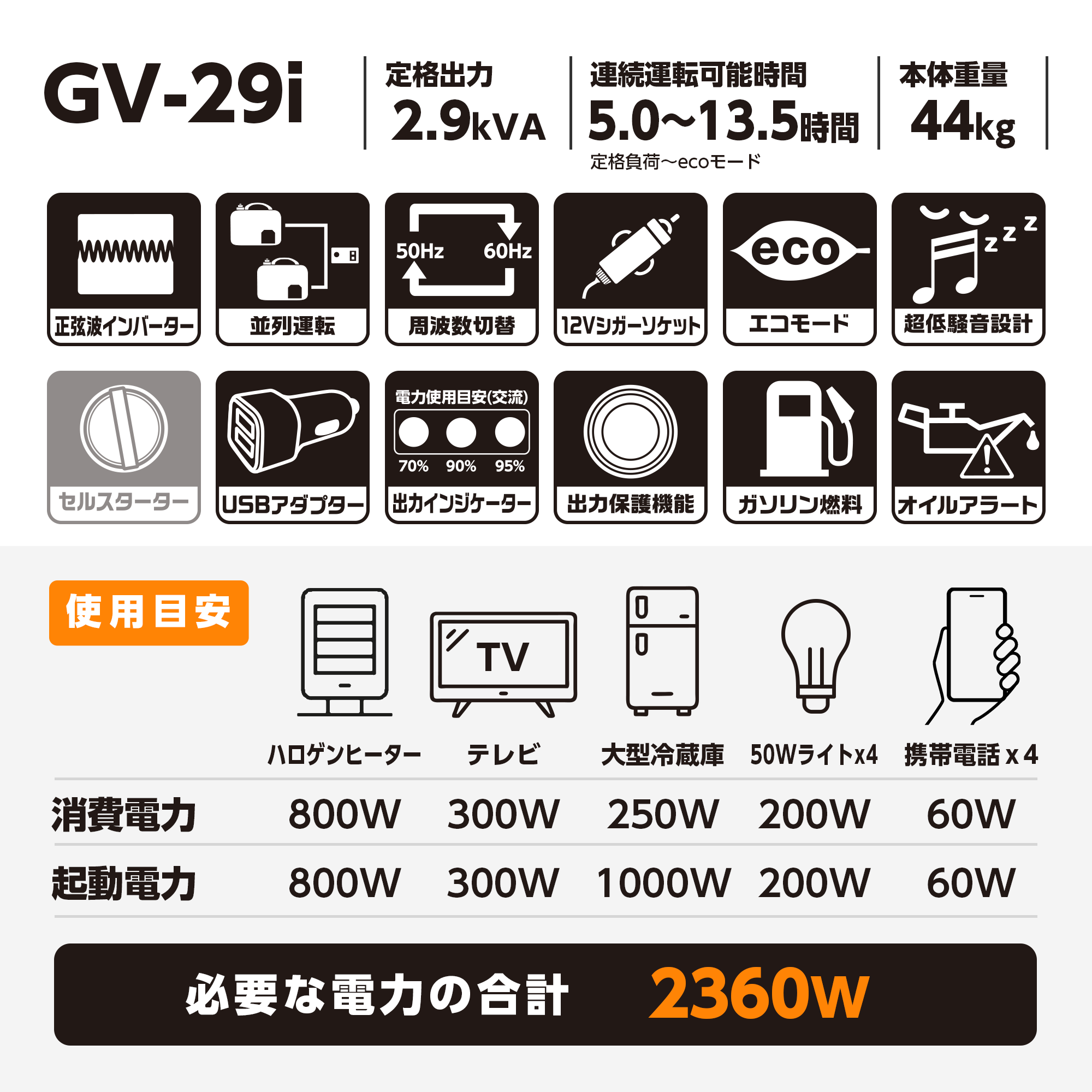 1.クラス最高の定格出力2.9kVA