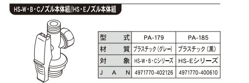 | 型式 | HS ノズル本体クミ X・E用パーツ(PA-185) |