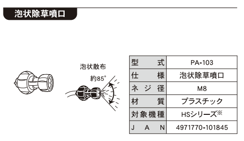 | 型式 | HS泡除草噴口クミパーツ (PA-103) |