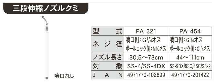 | 型式 | SS-4DX 3段伸縮ノズルクミ (PA-321) |