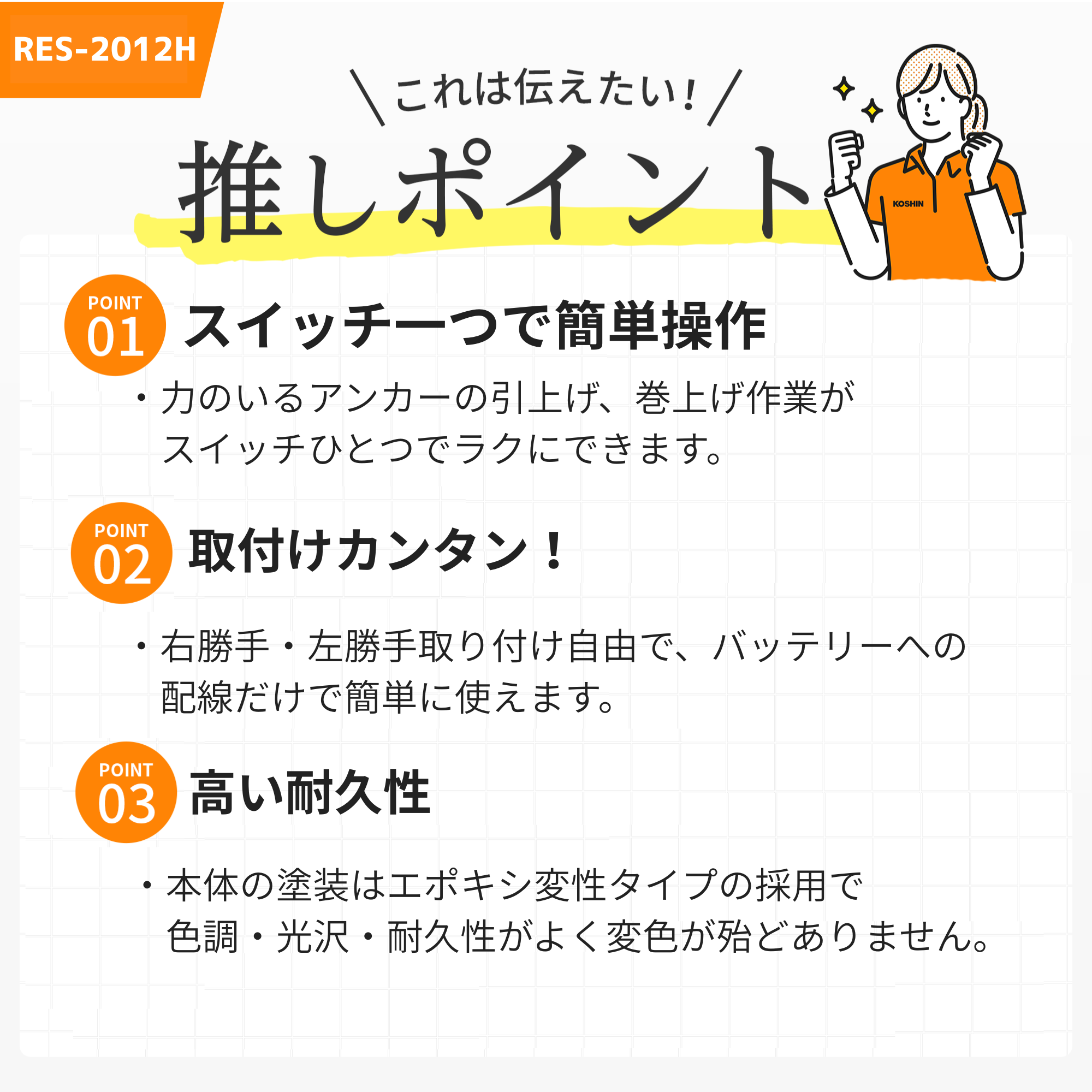 ●力のいるアンカーの引き揚げ、巻上げ作業がスイッチひとつでらくにできます。