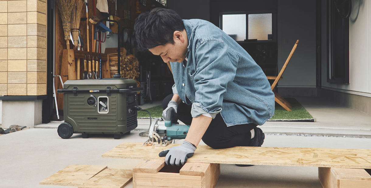 ガソリン使用で連続運転が可能。1700W(VA)の高出力でDIYや電力を必要とする長時間の作業も安心して使えます。
