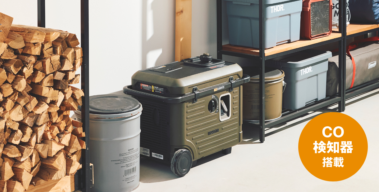 操作手順がわかりやすい番号ラベル付き。万が一の際には自動でエンジンが停止する一酸化炭素検知器搭載で安全性も備えています。