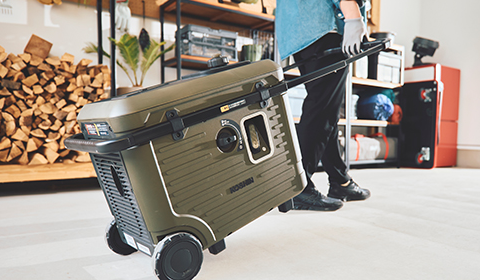便利な伸縮ハンドルと段差を乗り越える大型タイヤを採用し、移動や持ち運びもスムーズに行えます。
