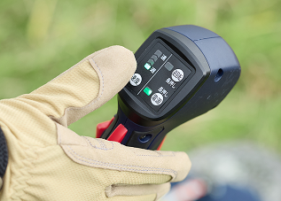 機体にある手順番号に沿って迷わず始動できる。手元のレバーを握れば動き、放せばすぐに停止するので安全・安心。