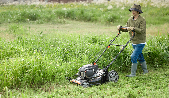 レバーを握るだけで自走するから女性や高齢者の方も力いらず。広範囲でも安定して作業でき、負担を抑えながら高い作業効率を発揮する。