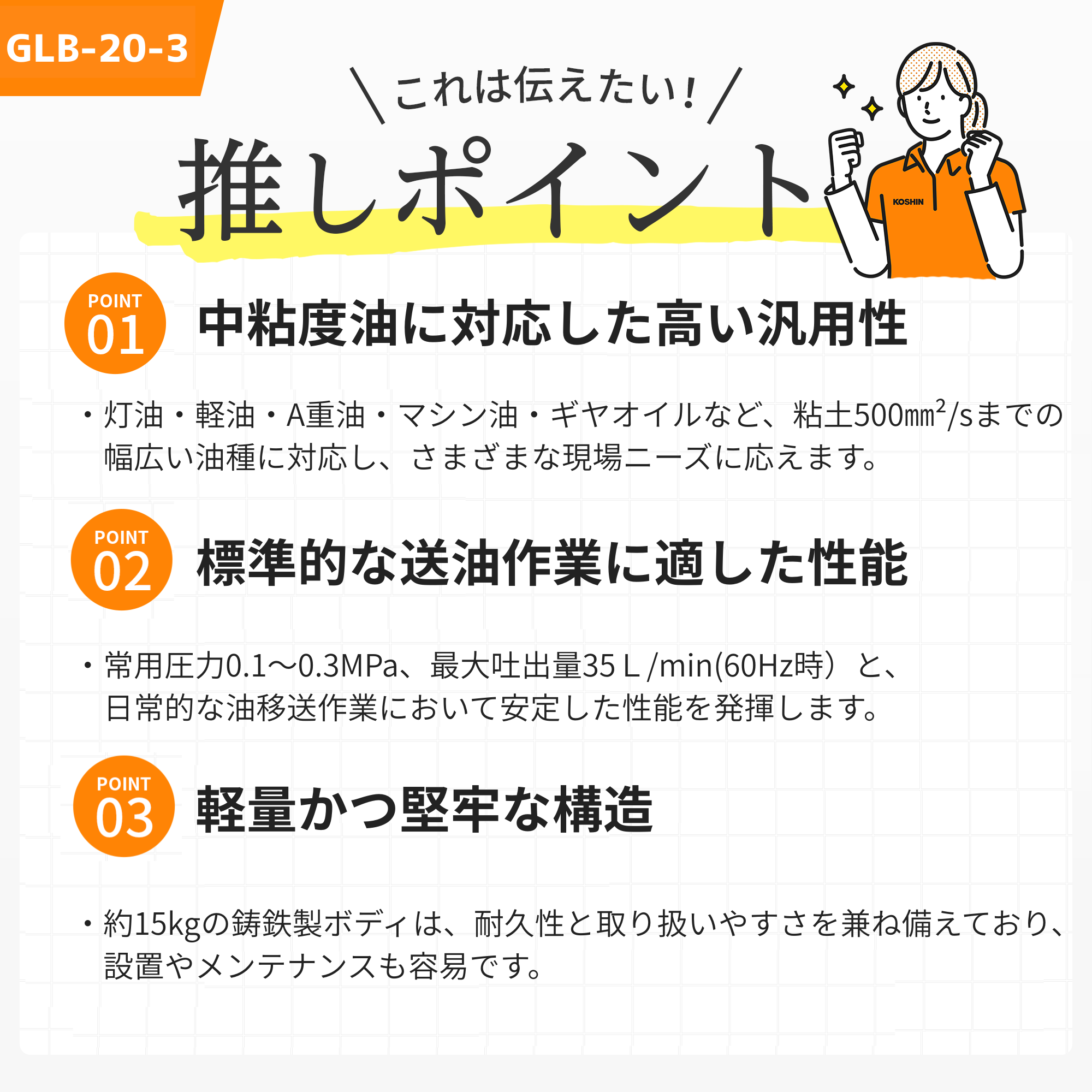●灯油・軽油・A重油からマシン油・ギヤオイルまで使用できる燃料移送用ポンプです