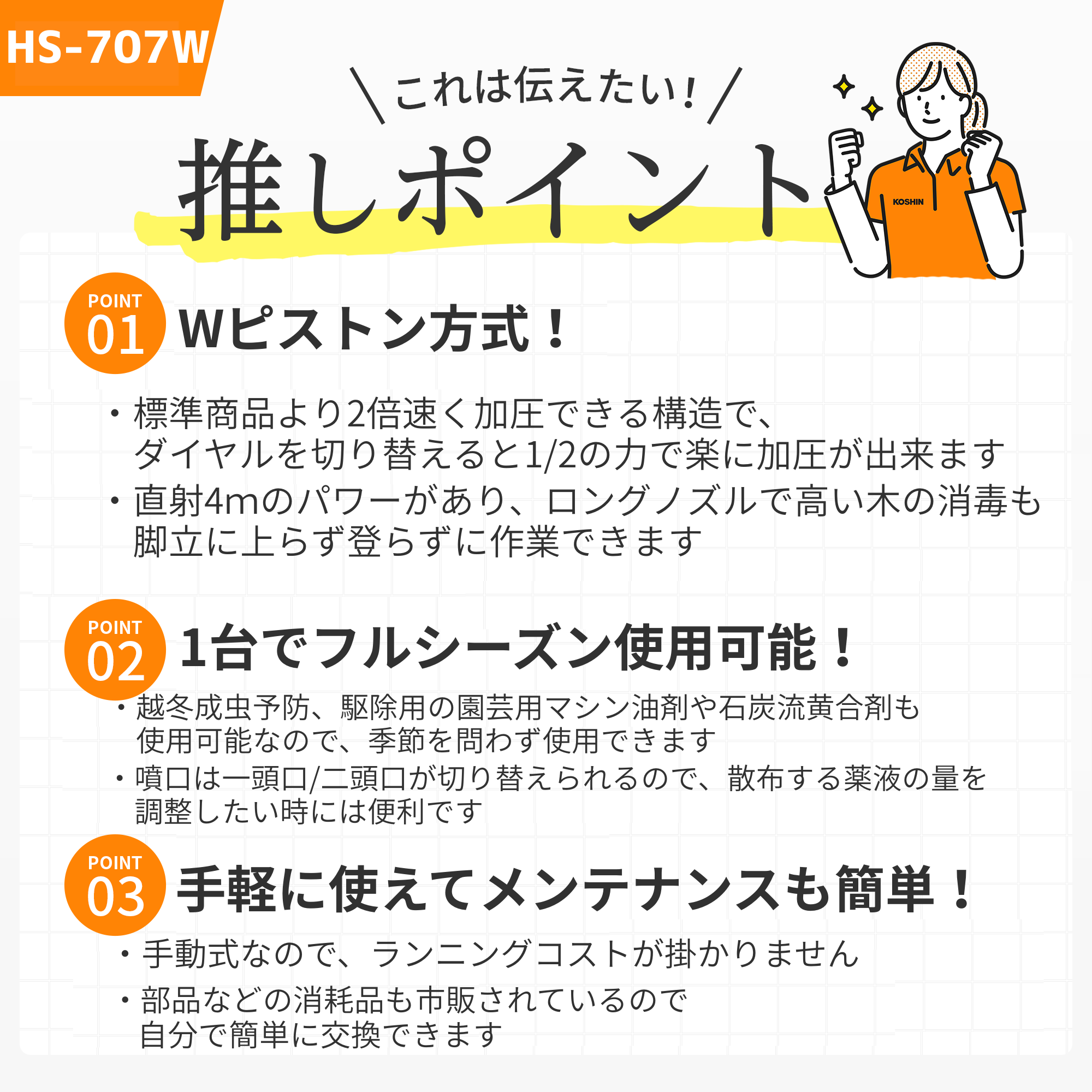 備考 | ※1:薬剤の種類や使用状況によって異なります。 ※2:薬害を防ぐため、噴霧器本体は消毒と除草の兼用使用はしないでください。 ※3:本体のみ。 |