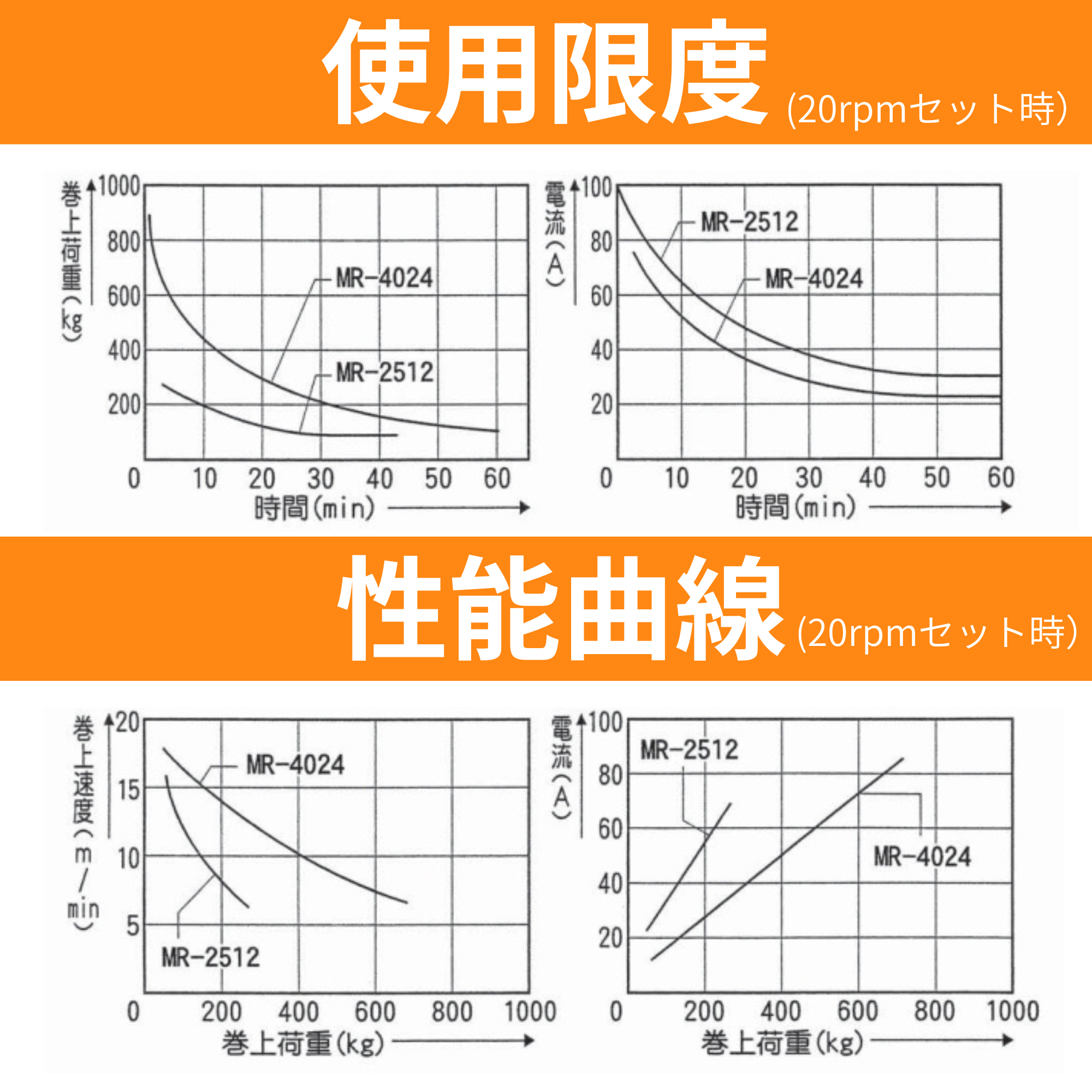 | 巻上能力(手ぐり)_常用(定格) | 80 kg (1 時間) / 20 min-1 セット時、40 kg (1 時間) / 40 min-1 セット時 |