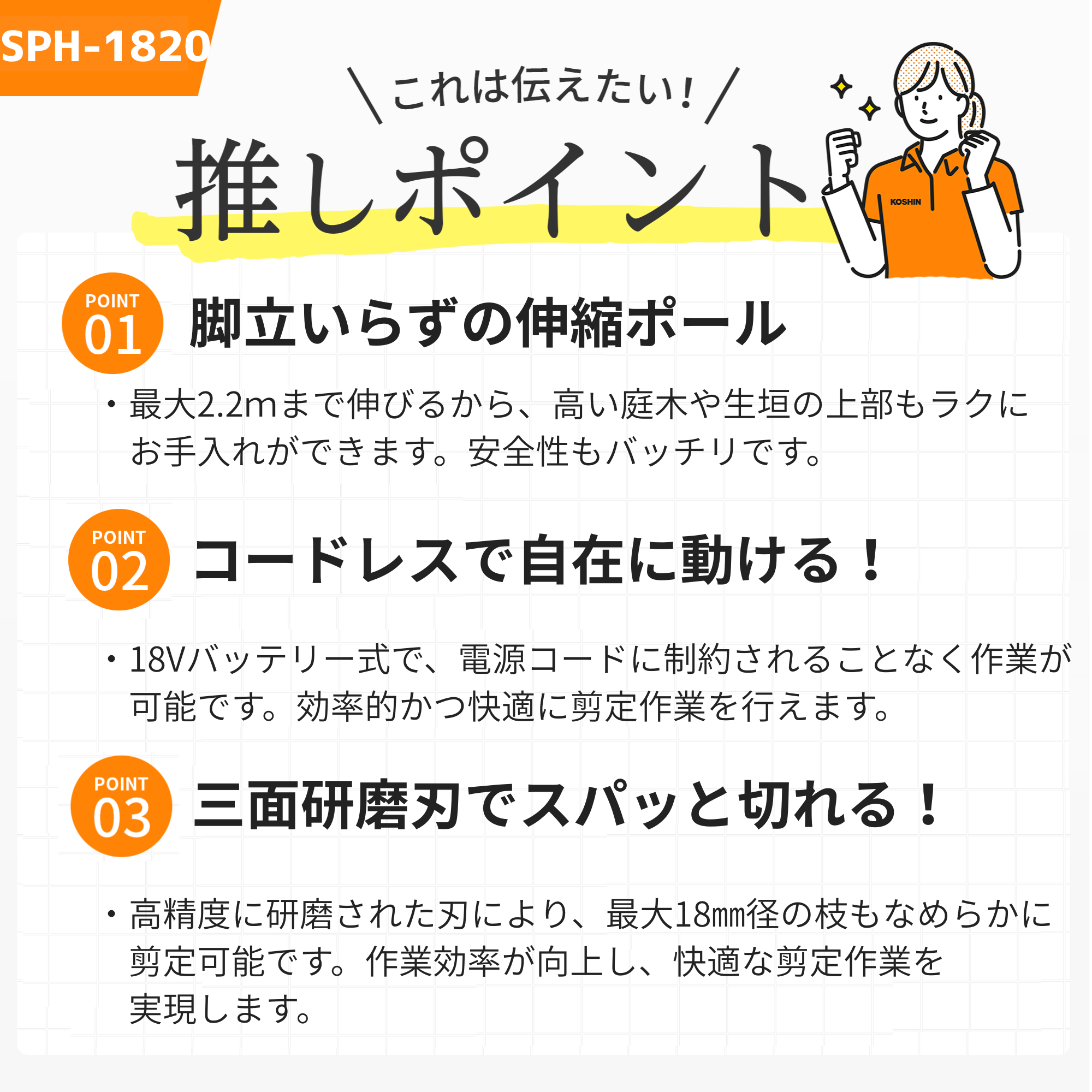 | ヘッジトリマ―_最大切断径(刃を軽く数秒間押し当てて、切断できる太さ) | 18 mm ※1 |