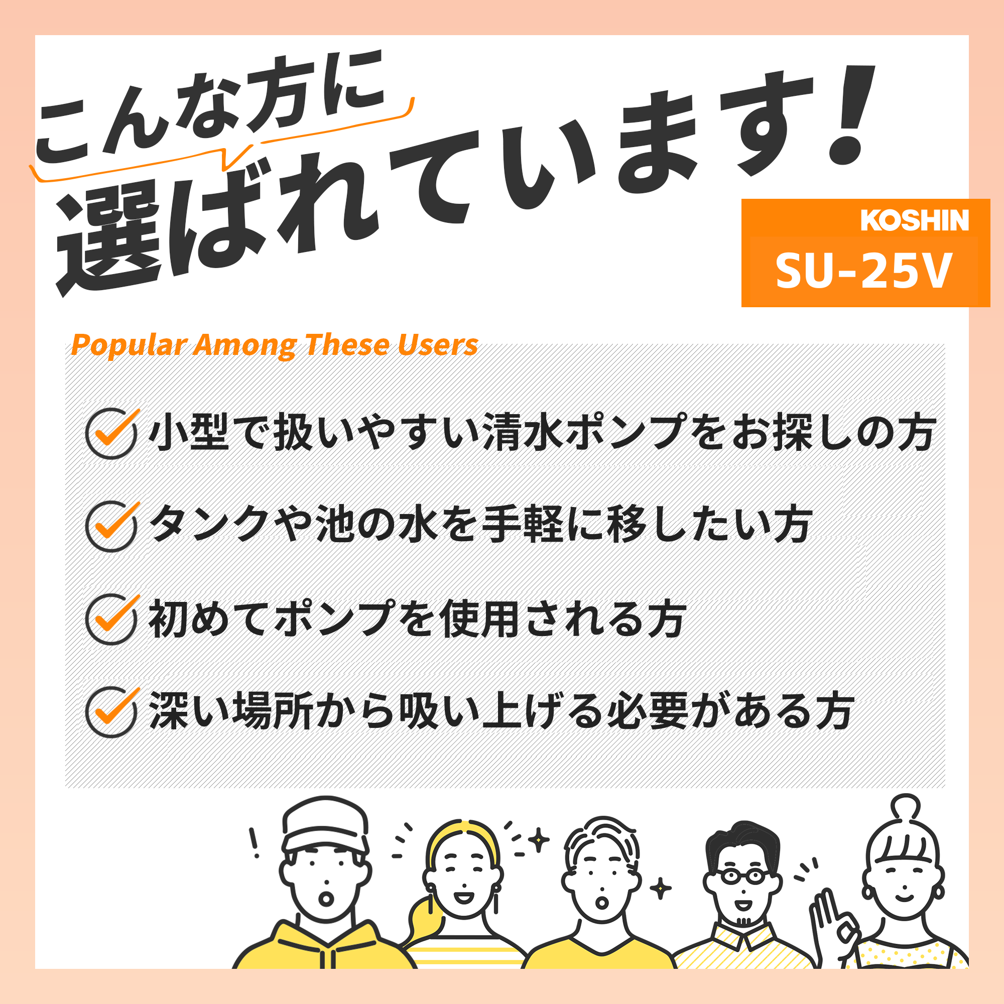 ●最高揚程70m(SUR-25V)、スプリンクラー、高所への灌水に最適。