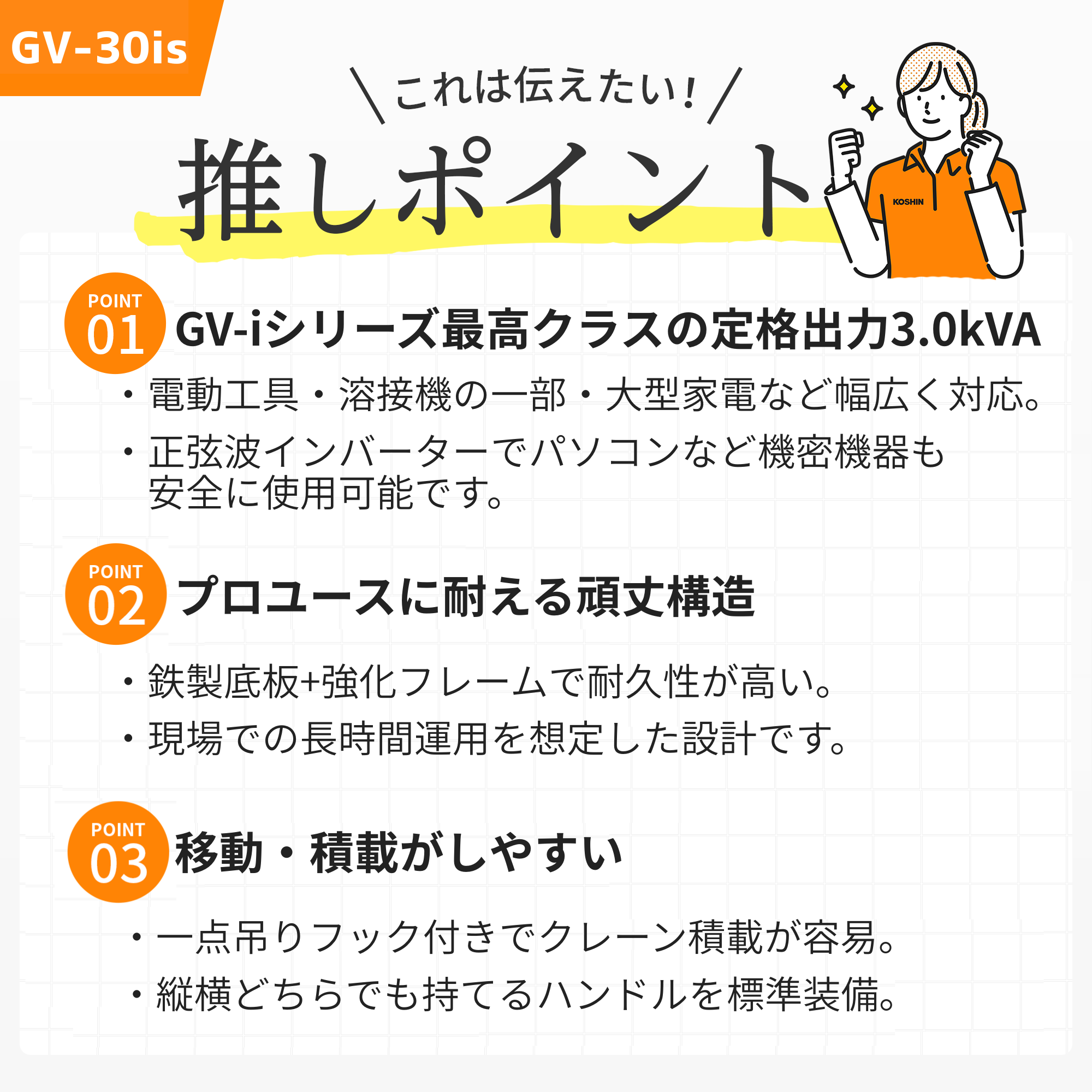 ●クラス最高の定格出力3.0kVA
