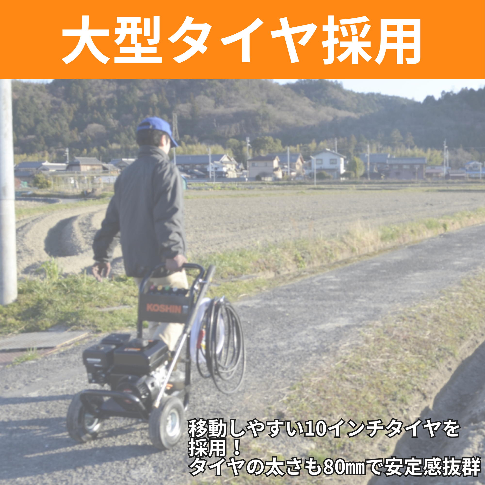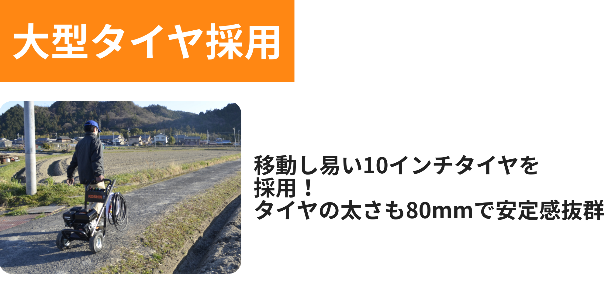 高圧力で出力することにより、トラクターなどのガンコな汚れも一掃できます。