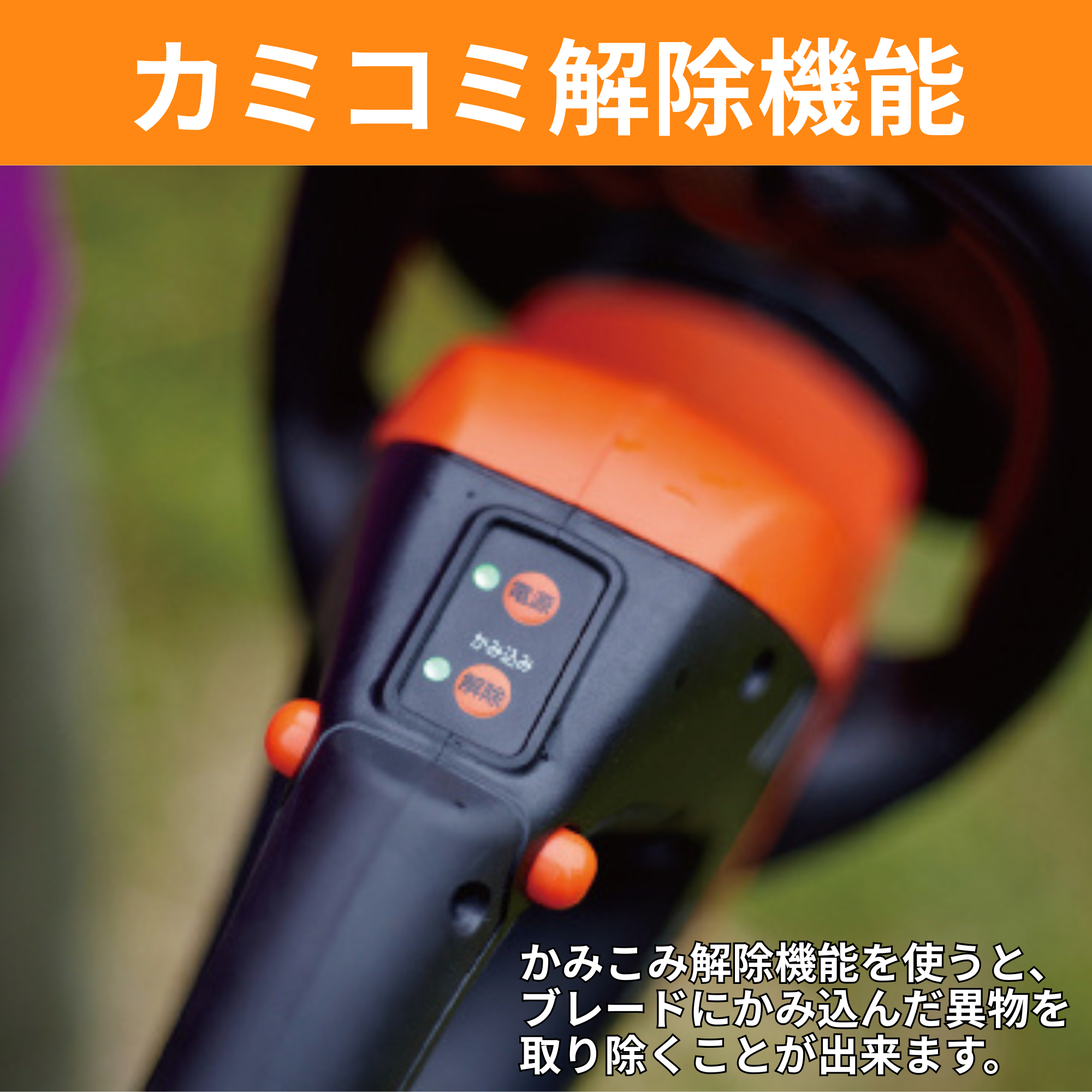 ●草木のかみ込みを手元のボタンで簡単に解除可能