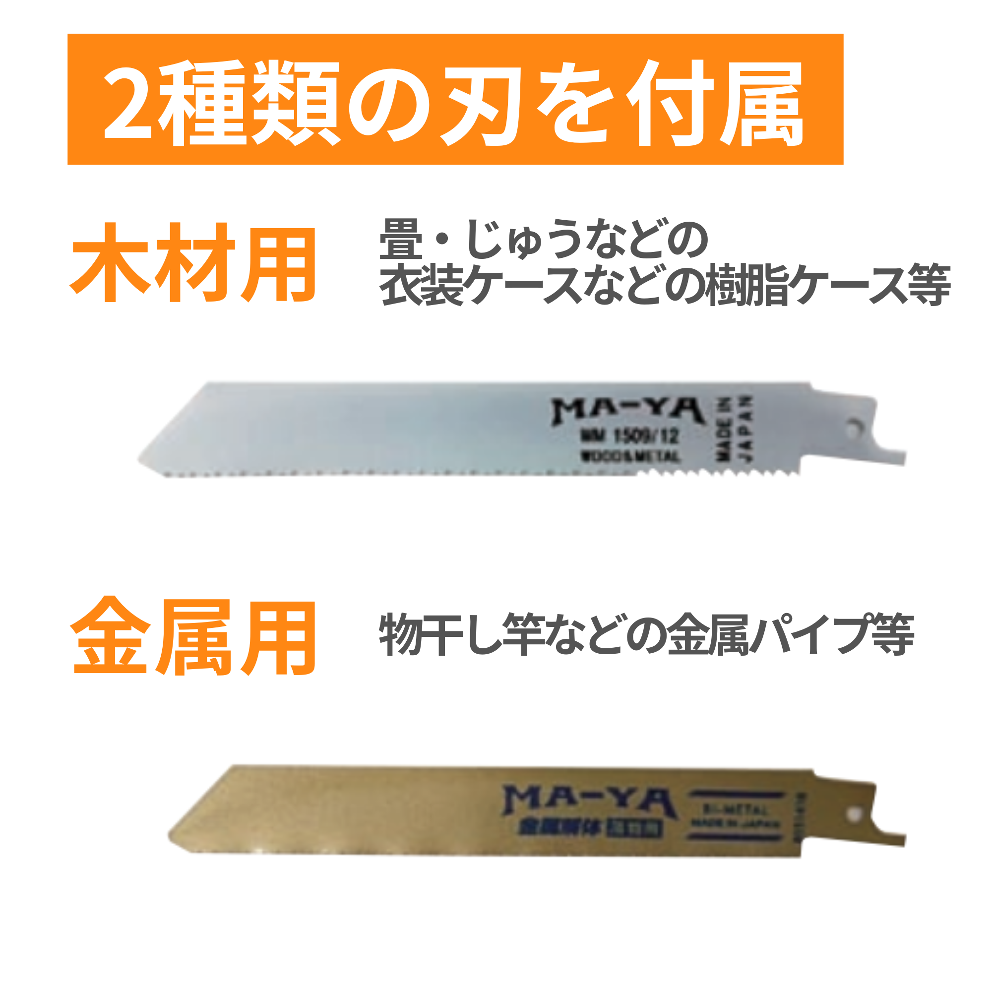 ●切れ味重視の日本製刃を標準装備、木材と金属用の2種を付属
