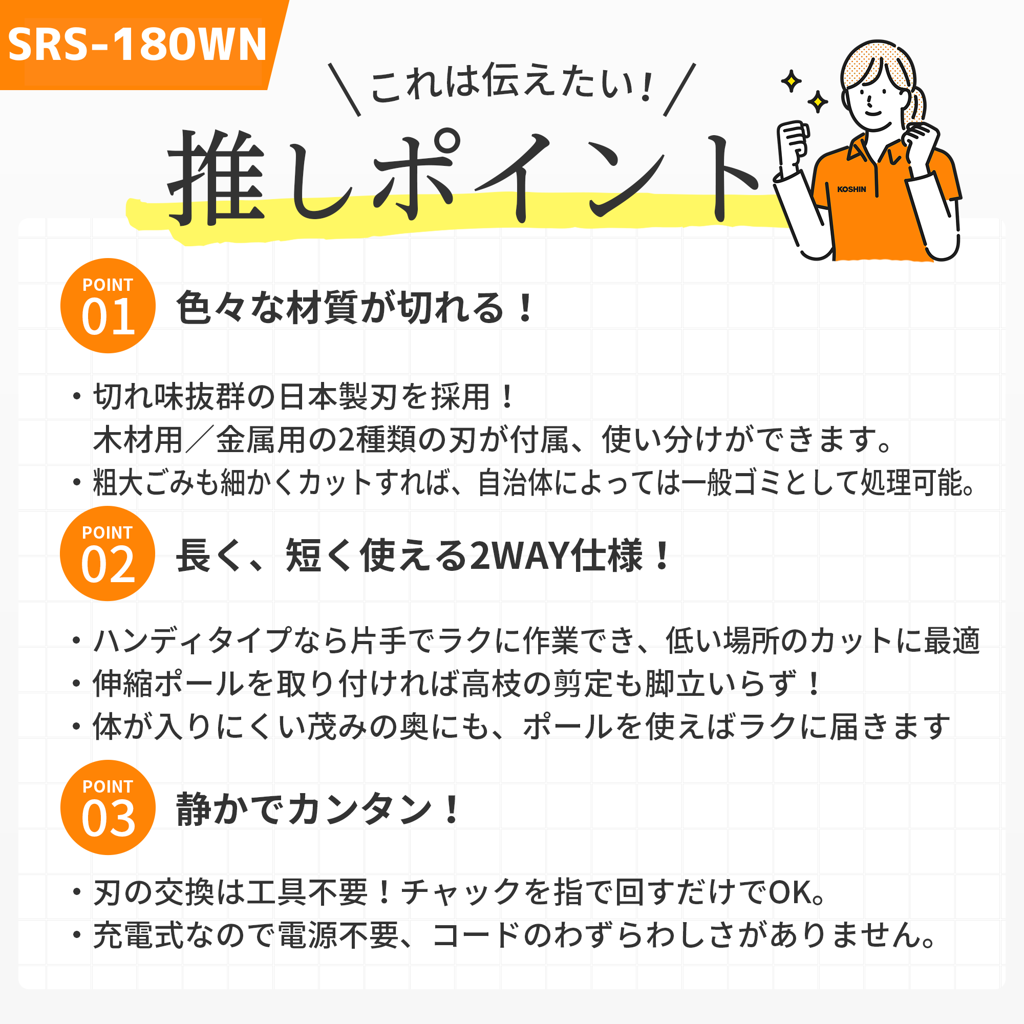 | 用途 | 枝・高枝・木材・合成樹脂・金属の切断 |
