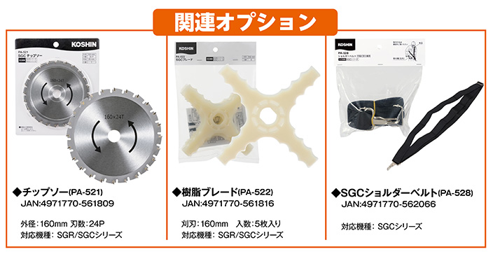 | 付属品 | 18V 2.0Ah(PA-332) 1個、18V 急速充電器Ⅱ(PA-430) 1個、チップソー 1枚、ブレード 2枚、飛散防護カバー 1個、エッジガード 1個、ループハンドル/ハンドルノブ 1個、六角レンチ 1個、ボックスレンチ 1個、保護メガネ 1個、取扱説明書 1部 |