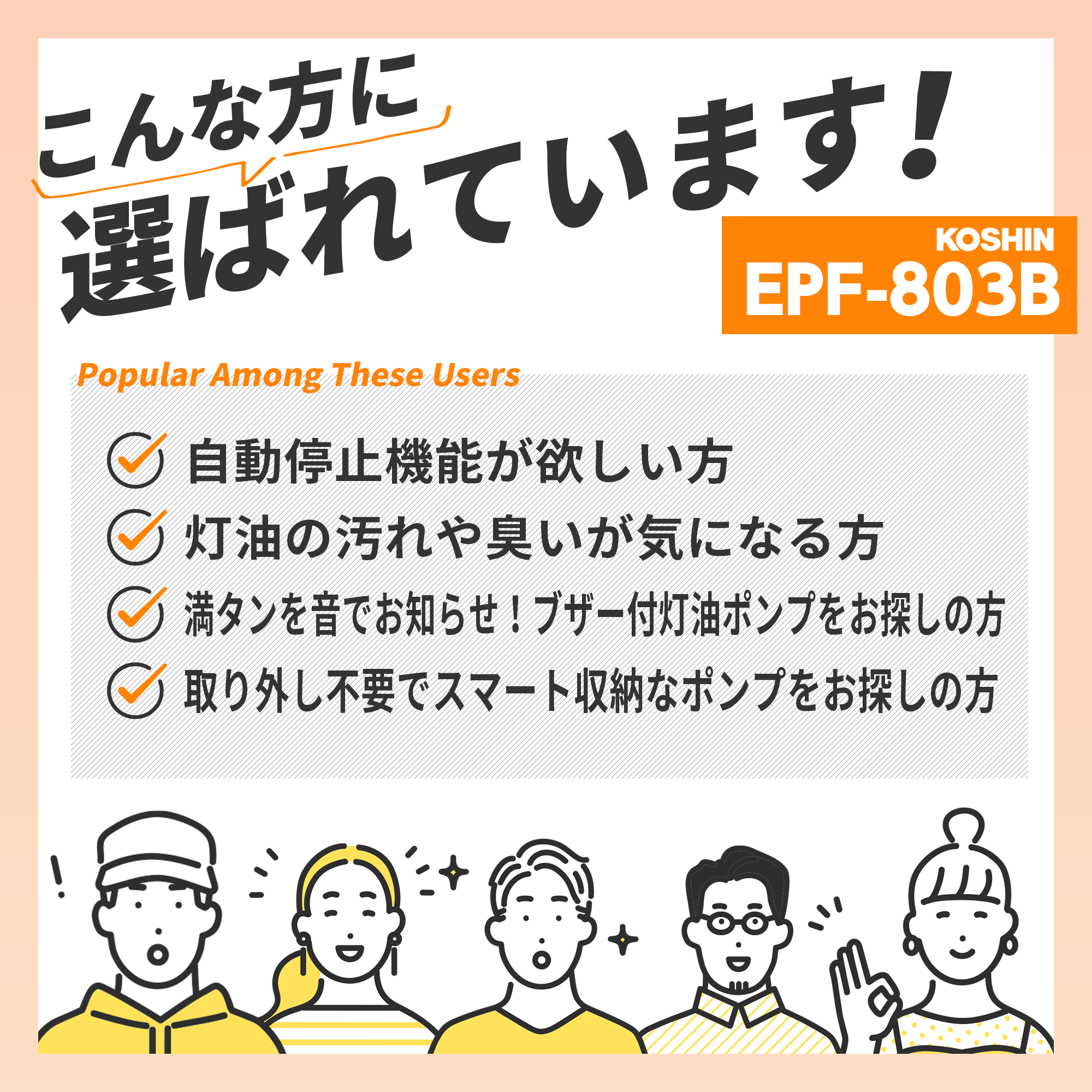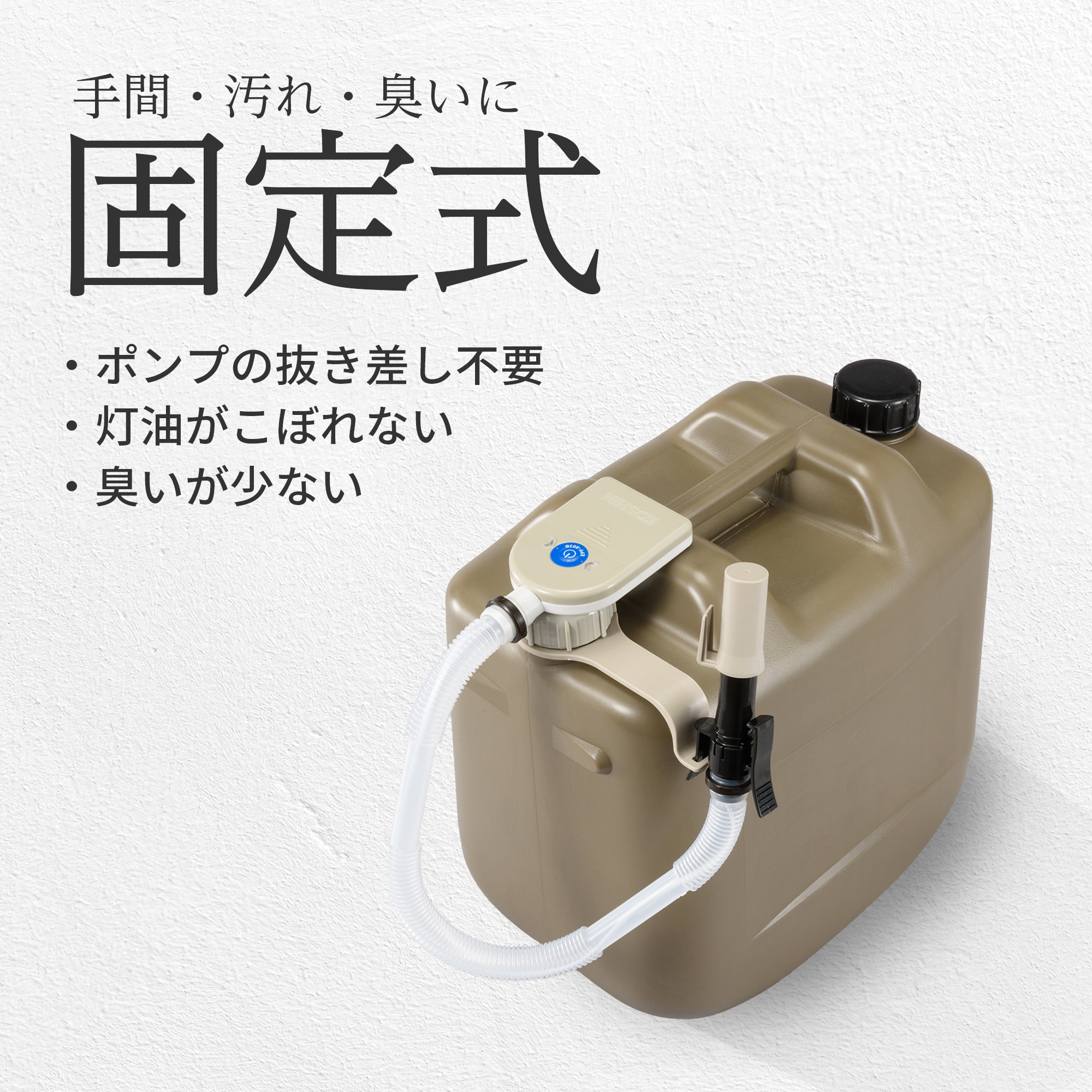 | 備考 | ※1:サイズが合わない器具には使わないでください (JIS規格推奨・認定マーク付き灯油かん推奨)。 ※2:JIS S 2037 流量試験法による。 ※3:用途以外の目的に使用しないでください。 使用不可液体例:軽油、ガソリン、第一石油類、A重油、溶剤、薬品、水など ※4:新旧・異種の電池を混用しないでください。 充電式電池も使用可能 (マンガン電池は使用不可)。 |