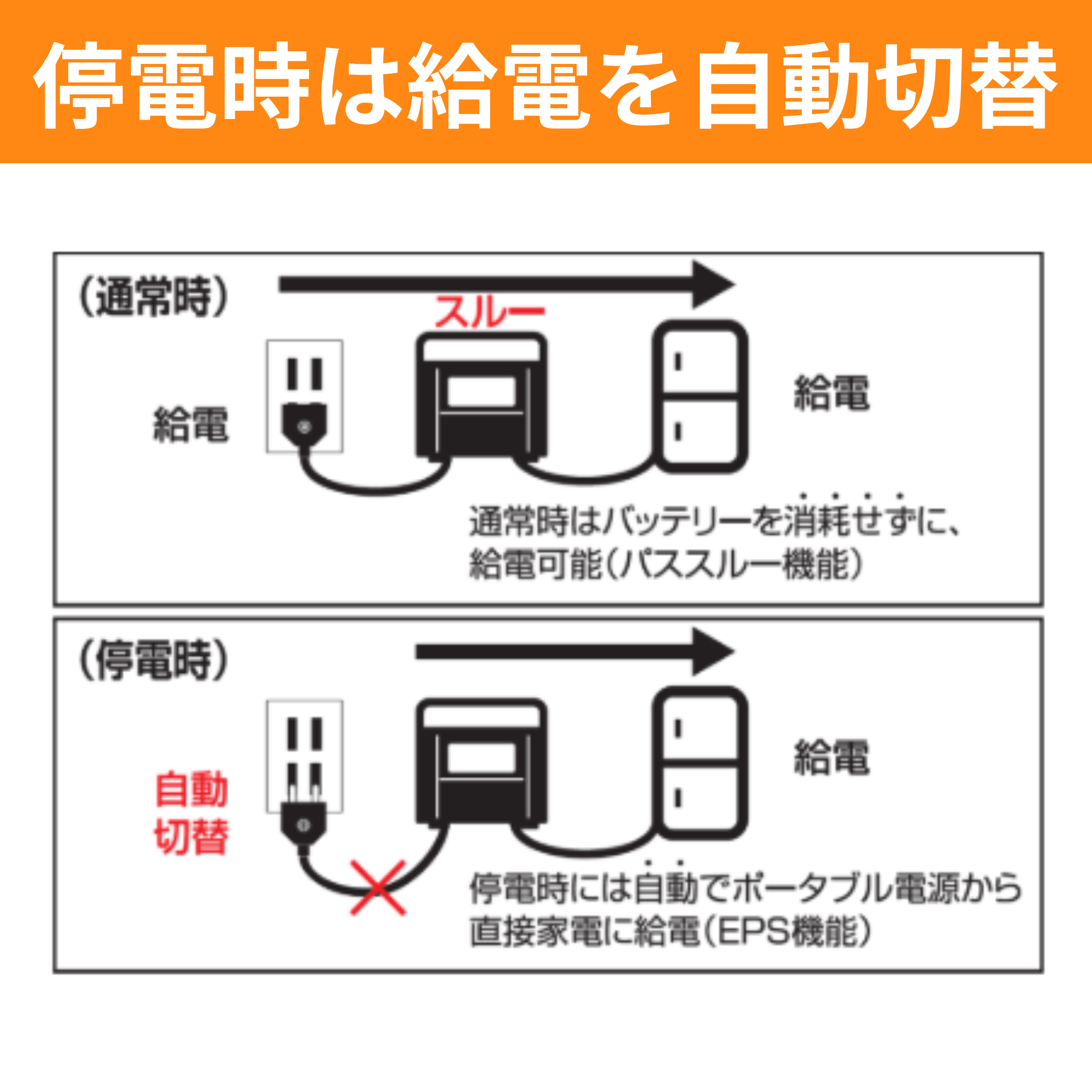 ・停電時でも給電が途切れず使えるEPS(非常用電源)・パススルー機能を搭載