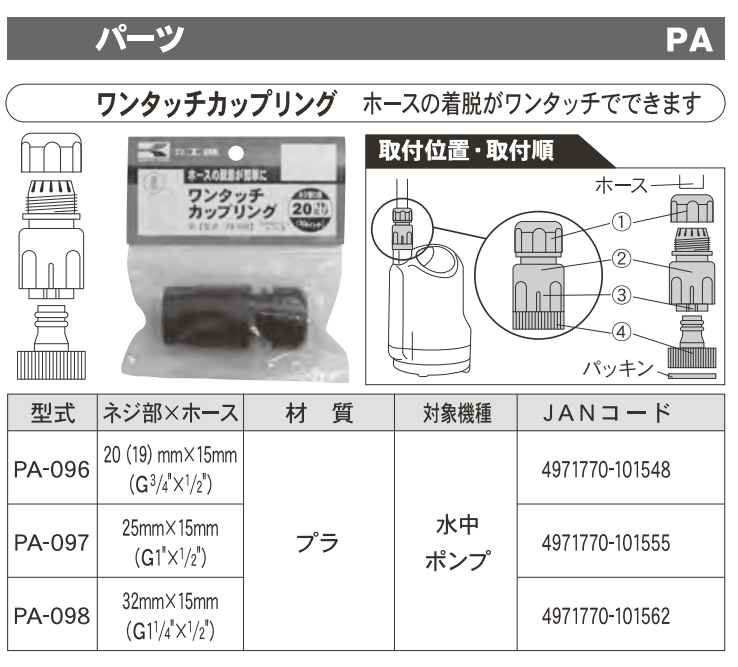 水用ポンプ・関連パーツ:ホースセット/SJ/SP/PA/MFインペラ/N/KF