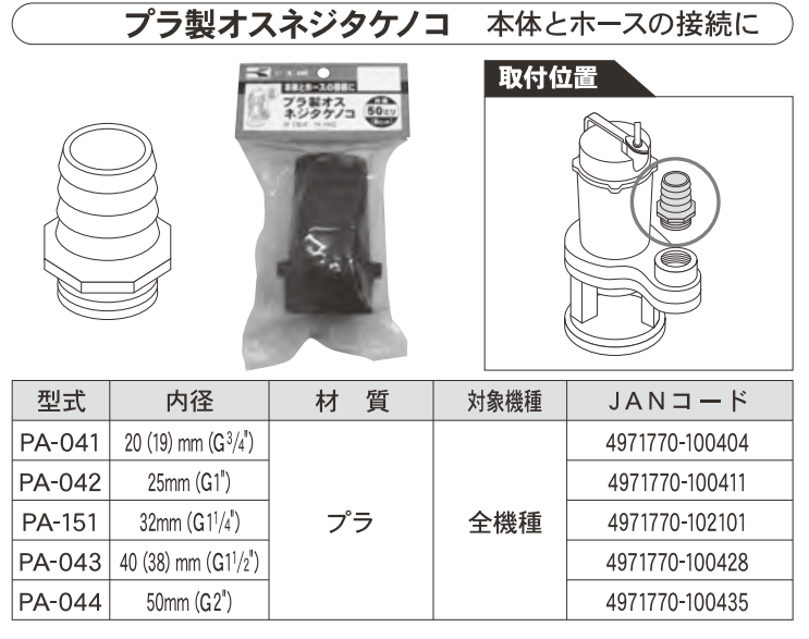 水用ポンプ・関連パーツ:ホースセット/SJ/SP/PA/MFインペラ/N/KF